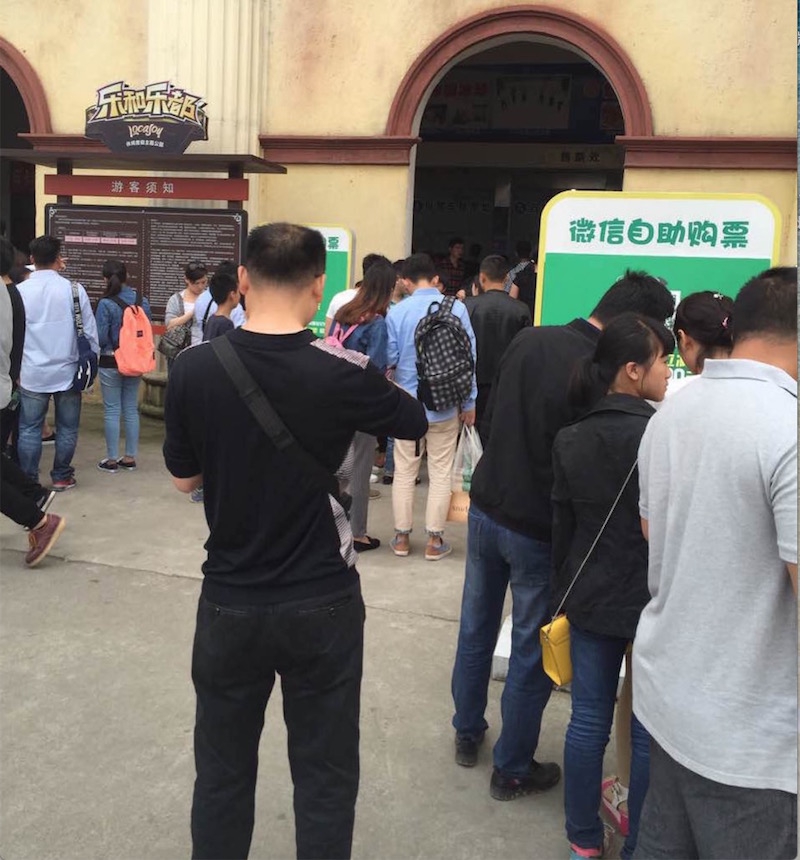 (圖為:游客正在樂和樂都通過微信掃碼購票)