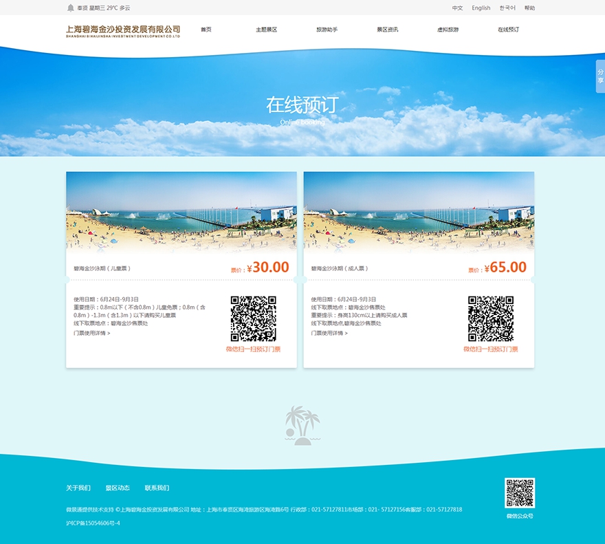 當然,“在線訂票”的功能也是必不可少的。“碧海金沙”水上樂園官網省去了繁瑣的驗證流程,只需要用手機掃一掃二維碼,即可秒購門票,極大節省了游客購票及排隊入園的等待時間,緩解了旺季售票窗口的壓力。