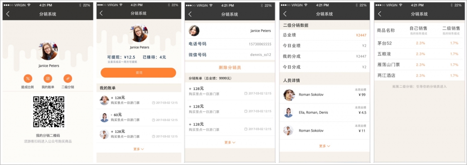 發動員工、導游、周邊商戶代理銷售門票、旅游商品等產品,并通過微信朋友圈和好友關系進行產品的推廣和傳播。每個分銷商都可以發展下一級下屬分銷商,訂單成交后相關聯的分銷商獲取分潤。