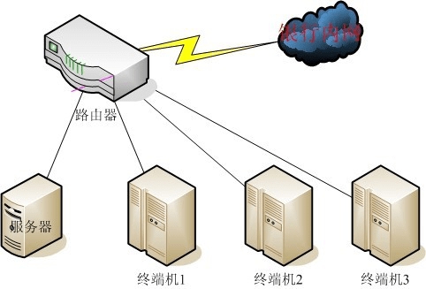 基本型網(wǎng)絡布局由一臺服務器與若干臺自助終端組成,通過路由器接入銀行內網(wǎng),服務器安裝售票系統(tǒng)服務器端程序,包括系統(tǒng)管理單元,財務管理單元與數(shù)據(jù)中心,終端機則安裝售票終端軟件。
