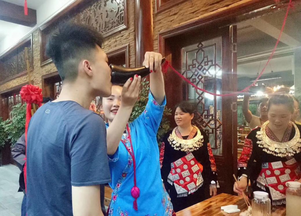 小伙伴體驗苗家風俗攔門酒